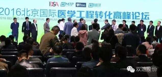 2016年10月12-13日,由中国食品药品企业质量安全促进会、中关村医学工程转化中心和美国宾夕法尼亚大学医学转化中心共同主办的“2016北京国际医学工程转化高峰论坛”在北京中关村医学工程转化中心园区正式开幕。双迪股份副总裁兼双迪创新科技研究院副院长王日升应邀出席论坛,同时双迪股份保健品、营养食品和调味品、化妆品、器械产品、多功能睡眠系统、基因检测等六大系列产品参展。