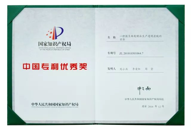 透明质酸分子具有良好的保湿性和黏弹性,因而广泛应用于各种化妆品、保健品、眼科手术、关节注射、促进创伤愈合、调节血管壁的通透性、医用整形材料等方面。康婷公司通过开展《微生物发酵法生产透明质酸的研究》项目,研发出一种发酵周期短、产品溶解性高、成本低且可以大规模生产食品级、化妆品级和医用注射凝胶产品的技术,满足市场需求。目前,本项目已经形成国家授权发明专利——《一种微生物发酵法生产透明质酸的方法》(专利号:ZL201010301064.7),并积极将科技成果产业化、规模化,将自主研发生产的高品质、高产量的透明质酸广泛应用于化妆品中,该发明专利于2016年12月荣获“中国专利优秀奖”。目前,康婷公司获授权专利76项,受理发明专利24项,受理实用新型专利5项。