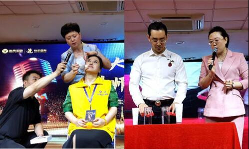 培训讲师张铧洢、李德巍带来部分刚需快消产品的现场演示,借助水、火、蓝墨水等工具,用事实说话,用效果验证,让学员眼见为实,现场见证了炎帝产品的优越性。