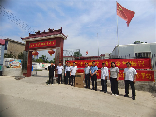 初夏的阳光格外灿烂,融合的爱心更是温暖。为进一步认真贯彻党的二十大精神,积极响应党和政府送文化、送健康下乡的号召和要求,5月16日,河南省慈善联合总会健康爱心基金、IPTV健康河南融媒联合金科伟业(中国)河南售后服务中心,与郑州市退役军人事务管理局驻新密下王村工作队,共同组织开展了以“做实健康帮扶,助力乡村振兴”为主题的健康公益行活动,暨健康产品捐赠仪式、“健康饮水与慢性病防治”健康公益行等,走进新密市米村镇下王村,让当地广大村民享受到免费的健康大餐。清华大学博士、爱心志愿者刘哲锋、河南省慈善联合总会健康爱心基金秘书长周凤伟、IPTV健康河南融媒主编宋亮、新密市米村镇下王村党总支书记兼村主任李海涛,郑州市退伍军人事务局驻下王村第一书记徐文博及多名爱心志愿者、数十名村民参加了活动。