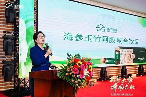 康尔生物专家讲师徐剑珍女士,深入浅出地从产品研发背景、组方原理、技术优势等方面分别对康尔生态家新品海参玉竹阿胶复合饮品和康尔三零富硒鸡蛋做了讲解,让现场及直播间的观众对康尔生态家新品有了更直观的感受与了解。
