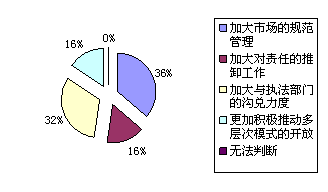 多层次直销的被禁止,一直以来就是直销企业人为刀俎,我为鱼肉的根本根源,而“传销罪”的可能出台,其实加剧了企业被鱼肉的危机感,在这种情况下,16%的被调查者选择了“企业将更加积极推动多层次模式的开放”。但是,在市场一线的营销人员认为,企业将加大对责任的推卸工作,这一比例占到了16%,这不仅表明直销员对企业勇于承担责任的信心严重不足,也反映出目前许多企业习惯把责任推给直销员的现实。