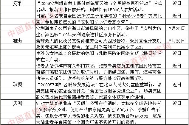 直销界一周动态统计表(7月25日—7月31日)