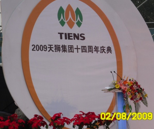 昨晚18:00—23:00在天狮学院操场举行了盛大的天狮集团成立十四周年庆典,同时表彰了优秀经销商,晚会由央视主持人方琼和成龙大弟子主持。参加晚会的人员主要是天狮中国区的经销商,天津市和武清区的有关领导,会场内近7000人。应邀参会的明星阵容强大,有国际巨星成龙及成家班新七小福,韩国劲舞巨星刘承俊,著名笑星冯巩,台湾天籁歌手周惠,藏族少女组合阿佳组合,飞翔耳摇滚乐队,歌手常石磊等。