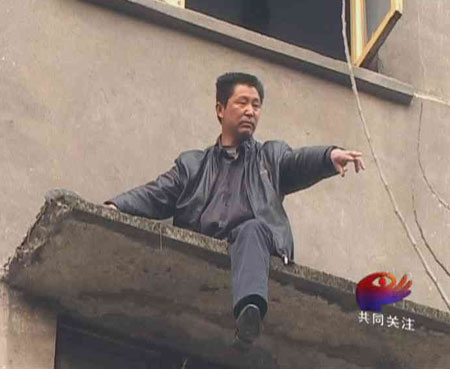 解说:2006年3月一天,一个站在楼房窗口的男子吸引了大家的注意。