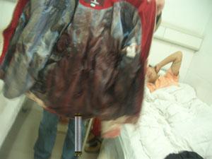 曙光此时刚做完手术得知:背部中3刀,一刀深入肋骨横膈膜,(腿部也中一刀,两天后才发现)。由于大量失血,曙光全身像床单一样雪白,血管收缩。护士打点滴时为了找到血管,从手部找到腿部,几乎找了遍全身,最终在手臂上找到了血管。曙光还一直在安慰我和小梁:“没事,没事,就是失血太多。”(期间联盟战友的电话短信不断,询问手术的状况,曙光的病情自不用说)小梁在曙光旁边守了整整一夜!