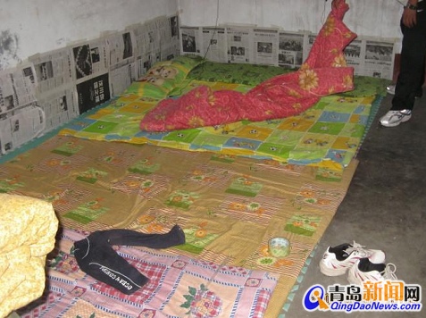 刘小姐:到了一个不是很新的平房里面,大通铺,10个人一个屋子,都是即墨的老乡,地上铺的泡沫塑料的垫子,上面是被子,一字排开。我问他条件也太差了吧,小林说不急,先看看,我就没多问,心想反正来了,等等看吧,晚上没安排活动,就是打得青岛够级,我想出去转转,他们说附近晚上不安全,有野狗。