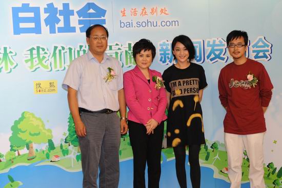 8月19日,搜狐白社会“绿光森林·我们的贡献”环保行动在京举行新闻发布会,著名影星周迅、中华环境保护基金会秘书长李伟、搜狐公司副总裁方刚、安利(中国)公共事务副总裁余放等合作方代表出席并致辞。该项目旨在通过“网友网上种树,企业捐资植树”这种线上线下互动的创新形式,倡导和传播低碳、环保的生活方式。