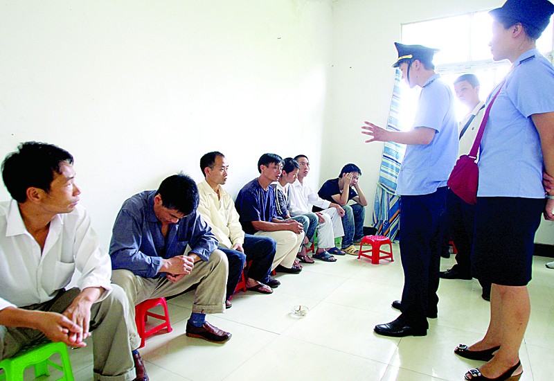因主谋脱逃,工商人员对传销者宣传了相关政策,劝说他们回家(如图)。传销者收拾行李,纷纷离去。