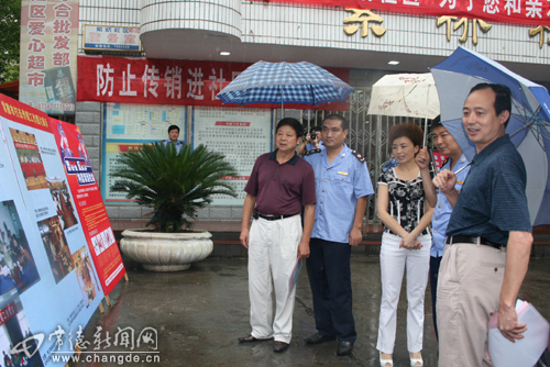 督导组一行冒雨检查指导紫桥社区打击传销工作