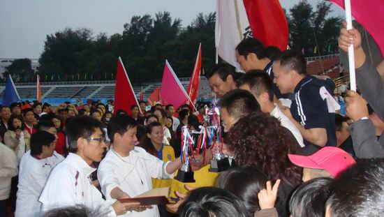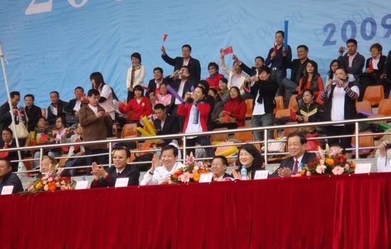 随着广州亚运会的临近,全民健身再掀热潮。而“2009富迪第一届运动会”也于昨(14)日在深圳大学隆重召开。美国富佑集团董事局主席陈怀德、富迪慈善基金理事长胡静、富迪营运总裁董德、长成国际商学院执行院长赵小菲以及深圳大学副校长李凤亮、原党委书记吴泽伟教授等嘉宾与5000富迪人欢聚一堂。1000余名运动员在20个比赛项目中争相角逐,整场运动会以竞技体育与娱乐比赛相结合的形式,让富迪人在比赛中加深友谊和了解,同时也激发员工和经销商不断进取、永不满足的斗志。