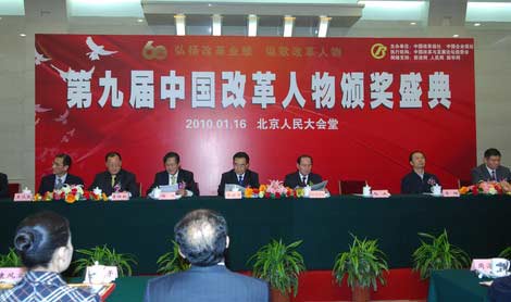 全国人大常委会副委员长司马义•铁力瓦尔地及国家发改委等相关部门领导出席此次颁奖活动。当天除了颁出“中国改革十大创新人物”奖,对在不同领域、不同行业取得非凡成就的改革创新之骄子进行表彰外,还揭晓了中国改革年度十大新闻、年度人物、十大新闻人物及百名优秀人物等。