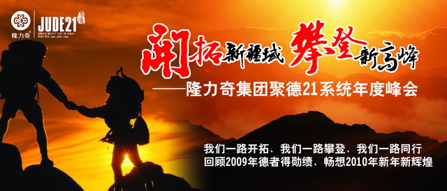 “勋绩已随旧岁往,新年更展宏图来”。回顾2009年德者得勋绩,畅想2010年新年新辉煌,2010年将是聚德21在隆力奇事业上具有重大意义的一年,聚德21将紧紧跟随以隆力奇集团徐之伟董事长、尹总、钱总为代表的公司领导层,一起开拓新疆域,攀登新高峰。故此,新的一年,聚德21必将有力地动员和团结全国各地聚德21家人,继往开来,与时俱进,开创建设隆力奇事业的新局面。聚德21将重点就中国大地的直销业发展状况及对隆力奇事业在这个行业的影响力,广泛开展调查研究,为促进隆力奇集团直销板块全面协调可持续发展建言献策;围绕加强队伍建设,以巩固团队建设与管理人才架构稳定为前提,在系统正规化,产业化方面取得新的成果,为隆力奇集团在中国直销行业的市场份额多做实事;坚持走民族产业奋飞发展策略,并积极走出国门,向着国际化道路迈进,真正实现“百年隆力奇,世界隆力奇”的伟大梦想。聚德21与隆力奇集团各级领导紧密合作、共同致力于建设隆力奇直销事业,以新的更大的成绩迎接新的一年的到来,并向隆力奇集团直销板块正式开业献上一份厚礼!