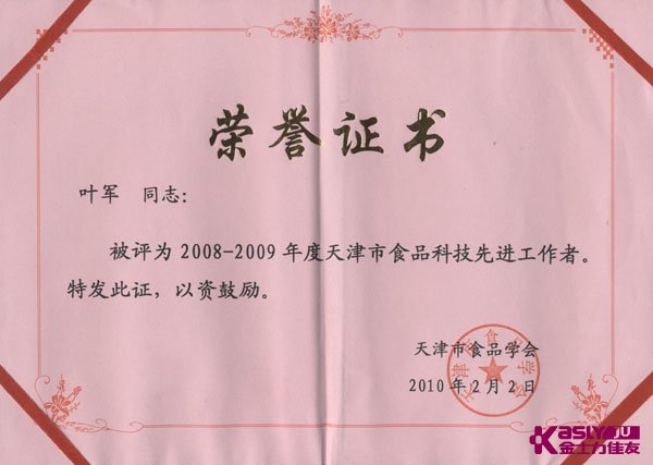 作为天士力大健康产业生命健康板块的主力军,金士力佳友被评为“2008—2009年度天津市食品安全优秀企业”。