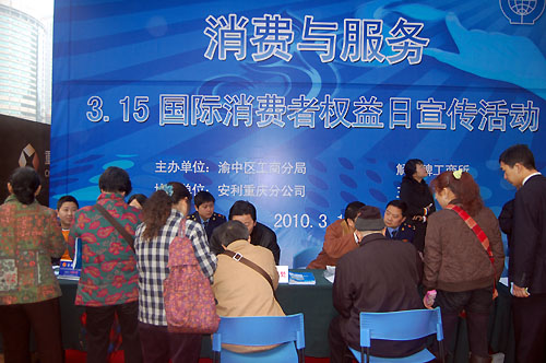 注重售前售后服务的安利重庆分公司持续多年获得由重庆市消费者权益保护委员会颁发的“年度售后服务先进单位”牌匾,再次蝉联该奖项,赵总笑容灿烂,她告诉笔者,“安利产品只是众多消费品中的一个点,希望通过‘3.15’的活动帮助更多消费者走出消费误区,保护自己的消费权益。”