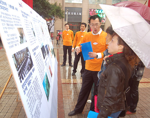 尽管今天细雨绵绵,但重庆市民关注“3.15”的热情丝毫未减退。由渝中区工商分局、解放碑工商所和安利重庆分公司等共同设立的宣传点成了市民们咨询消费者权益和了解安利等商品的聚集点。