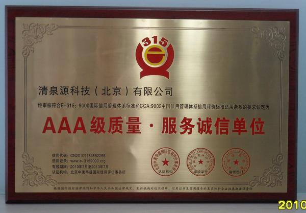 热烈祝贺清泉源科技(北京)有限公司执行董事、总经理钟辉先生被评为“中国诚信企业家”,清泉源科技(北京)有限公司被评为AAA级质量服务诚信单位。