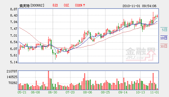 而目前的索芙特正急需这笔资金。理财周报记者了解到,索芙特股份有限公司计划从今年起,用7年时间在江州区驮卢镇莲塘村花梨屯投资60个亿建设全国第一个“桃花岛”模式新农村示范区,项目首期投资即3.25亿元人民币。但从索芙特现在的财务状况来看,索芙特并没有能力一下子拿出这么多资金。截止到今年9月30日,索芙特账面上货币资金只有14633万元,而其流动负债的数字为38743万元。