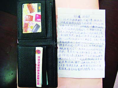 康某空无一文的皮夹及绝笔书。
