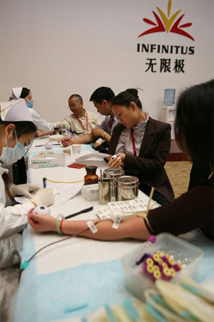 12月22日,农历冬至。几个穿白大褂的护士一早就出现在了位于广州珠江新城的“无限极中心”。这是无限极(中国)举行员工献血的日子,特别的是,几位员工家属也参加了这一活动。