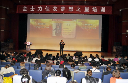 2012年3月10日,金士力佳友第九期“梦想之星”培训在津再次隆重召开。距首期“梦想之星”培训召开至今,经过近六个月的发展,“梦想之星”培训学员已由最初的每期近300人发展到每期近2000人的培训规模,面对日新月异的大健康市场,我们将竭诚为广大经销商伙伴提供最优质的教育服务,携手广大事业伙伴共创辉煌迎向我们人生成功的高峰!
