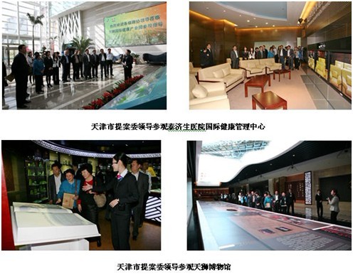 4月27日,在天津市武清区政协领导的带领下,天津市提案委专职副主任金超、和平区政协副主席李联国、河东区政协副主席王占勤以及天津市市区县政协提案工作组领导莅临天狮集团考察工作,天狮集团相关领导表示热烈欢迎并全程陪同参观讲解。来访领导兴致地参观了天狮国际健康产业园内的泰济生医院国际健康管理中心及天狮博物馆。