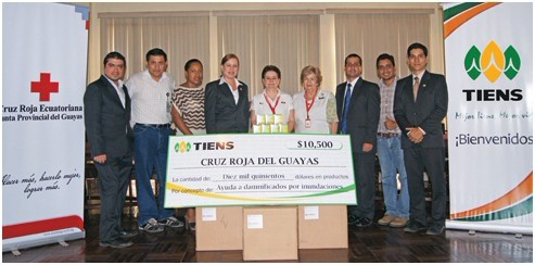 4月27日,天狮厄瓜多尔分公司经理带领经销商伙伴们,将价值10, 500美元的“天狮儿童营养高钙冲剂”交给了当地的“红十字协会”,希望帮助他们摆脱生活困境,改善生活品质,迎接美好未来。