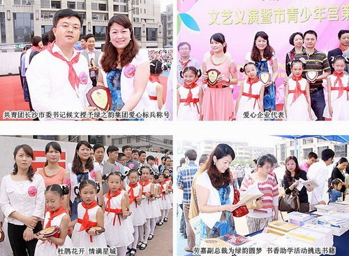 2012年5月26日,第三届“杜鹃花开•情满星城”大型公益活动在长沙青少年文化宫举行。本次活动由长沙市委组织部、市委宣传部、市文明办、市少工委、团市委、市教育局、《长沙晚报》报业集团、市广播电视台联合举办,市青少年宫、市青基会共同承办。团省委副书记罗琼、副市长、市少工委主任夏建平等与200多名孤残儿童、特困农村留守儿童、农民工子女提前庆祝六一儿童节。绿之韵集团慈善基金捐赠十万元爱心款项定向帮扶孤苦儿童、留守儿童。绿之韵集团董事常务副总裁劳嘉女士代表公司参与此次活动并接受“爱心标兵”荣誉牌匾。