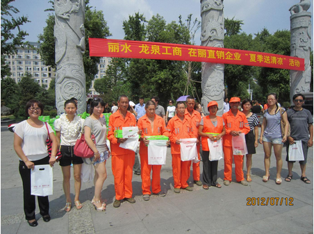 7月12日,由浙江省丽水市工商局和龙泉市工商局组织“夏季送清凉慰问环卫工人”公益活动,得到了当地直销企业的积极参与,金士力佳友浙江分公司经理王军及金士力佳友龙泉当地经销商代表季伟明、陈中华等也参加了此次活动。