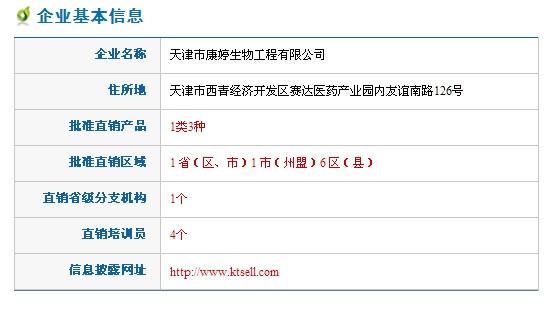商务部直销行业管理信息系统网站公布的康婷获批信息