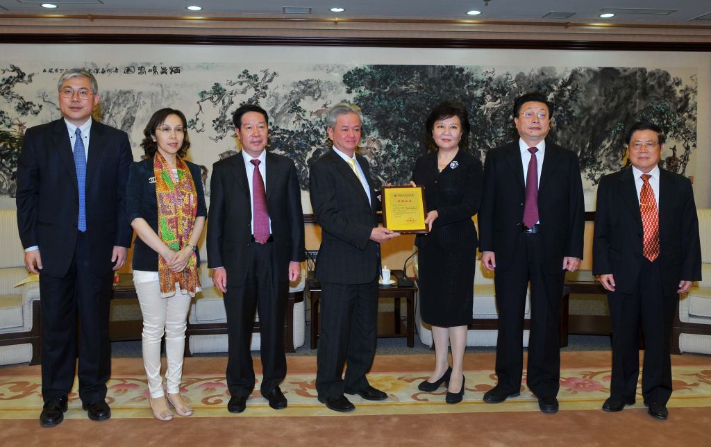 裘援平主任代表中国华文教育基金会向古润金董事长办颁发了《捐赠证书》。她在致辞中,代表国务院侨办感谢古润金董事长多年来对海外华文教育事业的热心支持与倾情捐赠,并对他和完美(中国)有限公司在雅安地震后积极参与社会救助的企业行为予以高度赞誉。裘援平主任表示,作为海外华侨华人的杰出代表,古润金董事长用实际行动践行了“取之社会,用之社会”的企业理念,这种精神令人钦佩。她希望基金会全体员工要珍惜善款,用好善款。根据海外华文教育的需要实际开展切合实际的工作项目,为海外侨胞多做好事、多做实事。