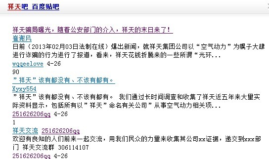 凌云会长随即对此召开了小组会议,并指出,祥天集团在网络上进行大量的公关删帖,百度贴吧的众多投诉者的文章已经被删除,要求联盟成立调查小组,会同编辑部对祥天集团进行详细的调查了解并深入曝光,绝不能让曝光犯罪行为的声音销声匿迹于网络。本联盟网站编辑记者“第一线、蓝剑、天眼”三人对祥天集团销售原始股进行调查。现对调查结果进行公布。