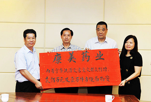 在得知家乡普宁发生洪涝灾害后,8月19日傍晚18时30分,康美药业董事长、总经理马兴田,副董事长、常务副总经理许冬瑾代表公司向普宁市洪涝灾害受灾群众捐款200万元及1万件方便面。