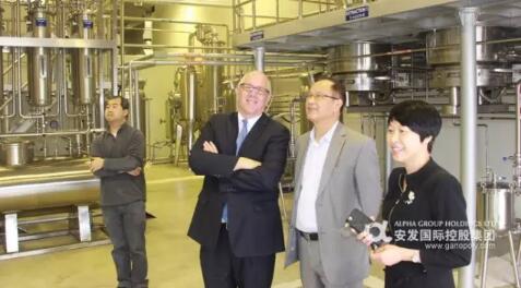 随后,伍大使在高教授的陪同下参观了安发的新提取发酵车间,在这个刚刚由新西兰总理约翰·基先生揭幕的新生产车间里,伍大使饶有兴趣地向生产经理许启鹏和研发骨干胡浩博士详细了解了全套设备的生产流程及技术特点。
