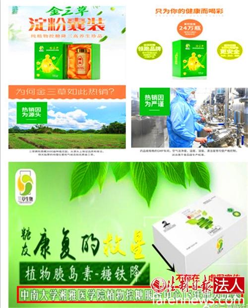 关于湖南三草的一篇题为“湘雅医学院16年攻关 成功推出滋补、调理、降糖三效新品金三草”的宣传文章称:“近日,湖南三草生物科技有限公司联合湖南上市制药集团尔康制药正式出品植物控糖降三高产品——金三草。这款新品的隆重上市,因其特性和效果明显,引发国内糖尿病患者的广泛关注。”