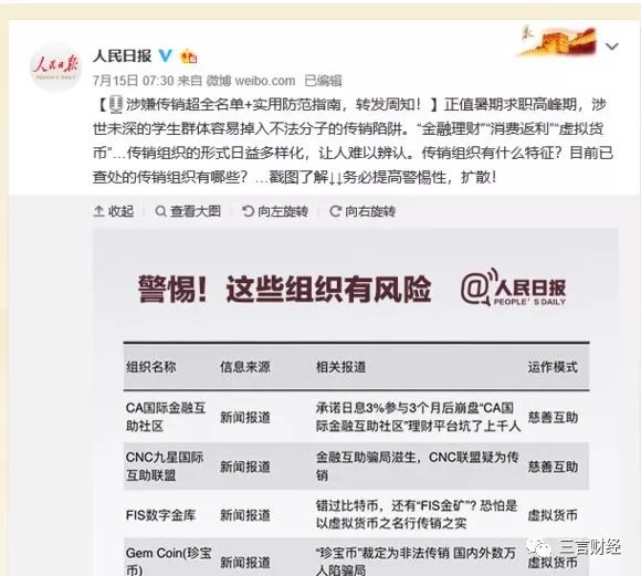 2018年7月15日,人民日报通过官方微博揭露了一批涉嫌传销的企业名单,摩能国际赫然在列。