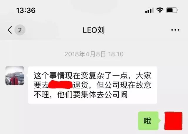 记者在调查中发现,这样的“维权”方式并非刘东灿的第一次。2018年4月8日,刘东灿就曾号召团队服务商到自己从事的前外资直销公司“集体去闹”,以达到“维权”的目的。
