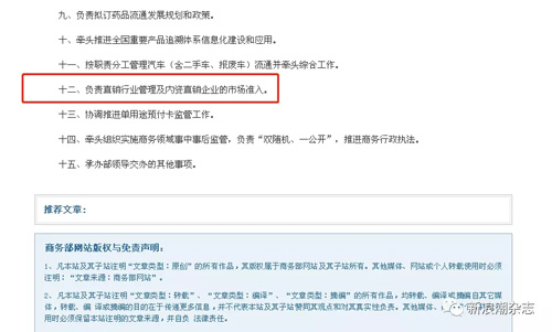 商务部内设机构调整,直销管理划归市场建设司