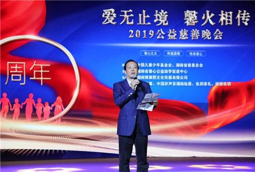 晚会伊始,湖南省慈善总会会长段林毅致辞。他首先对长期关心支持湖南慈善公益事业发展的各位领导、企业家朋友表示衷心的感谢和崇高的敬意。多年来慈善总会汇聚全省的爱心力量,严格落实省委省政府打好脱贫攻坚战的战略部署,聚焦扶贫攻坚,聚焦特殊群众,坚持慈善厚德,努力做好慈善捐助、慈善救助的工作。2019年,全省各级慈善机构共募集爱心款物超15亿元,先后帮助困难群众达600多万人次。慈善公益事业是一项伟大的事业,将与时代发展同频共振,需要社会各界大力的参与和支持。他呼吁,全省广大公益组织、企业界爱心朋友、社会爱心人士能更加踊跃积极投身到公益事业中,汇聚湖南力量,创造湖南慈善事业新成就,为打好脱贫攻坚战、全面建成小康社会,实现中华民族伟大复兴的中国梦贡献力量。
