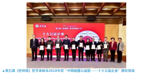 2020年1月9日,中国医师协会年会“推动行业前行的力量——第五届《医师报》医学家峰会(2020)”在京举行。会上,一年一度的“中国健康公益星”评选结果正式揭晓,以岭药业荣获2019年度“中国健康公益星——十大公益企业”称号!这也是《医师报》自2017年发起寻找“中国健康公益星”活动以来,以岭药业连续第四年荣获“年度十大公益企业”殊荣。