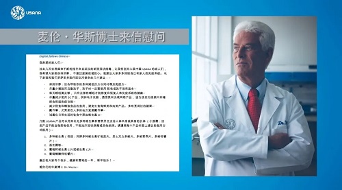 USANA大家庭一直关注彼此,心系大家。在疫情发生之初,USANA葆婴的家人们收到了一封特殊的来信,远在大洋彼岸的USANA创始人麦伦·华斯博士给家人们带来他和罗萨里多医疗团队的建议,并祝福家人们能够享有一个祥和、健康、富裕的新年。
