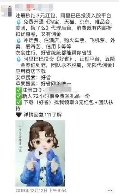 但小编发现,如今互联网上,类似“芬香”涉嫌传销的社交电商,其实不在少数。今天咱们讲的这家名为“好省”的APP,更是宣传阿里投资,无限层级。小编在天眼查上发现,3月14日,人民日报也点名批评,直指好省APP运营行为涉嫌传销。
