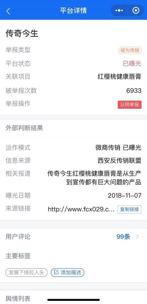 小编也曾一时好奇忍不住去搜索了一把,但是均被劝退。这不,传奇今生这个品牌最近又摊上事儿了,因为这个品牌的营销策略是采用五级代理制度的,与传销颇为相似,因此而受到不少人的质疑。