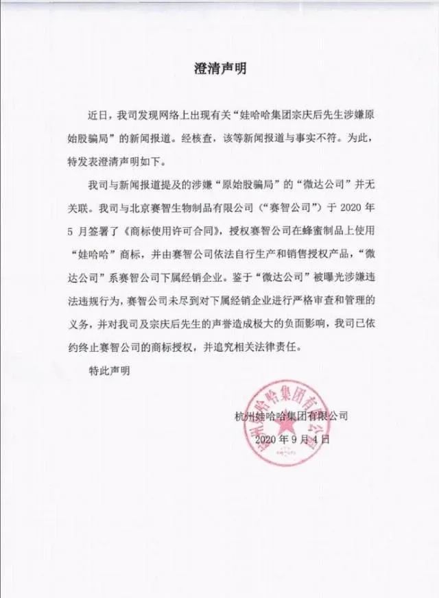 娃哈哈的澄清公告