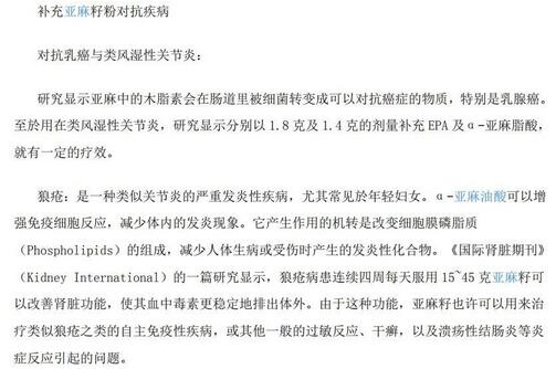 还有“亚麻籽粉”这个成分,也被有关资料宣传为具有对抗乳癌与类风湿性关节炎、增加肠蠕动、降低胆固醇、预防心血管疾病、调节荷尔蒙、改善更年期症状等功效。