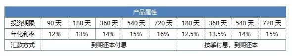 银优计划有到期还本付息、按季付息到期还本,两种回款方式,到期还本付息年化利率为12%~16%,按季付息到期还本的年化利率为12.5%~15%。