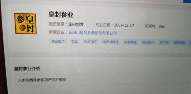 然而据企查查信息显示,皇封参品牌的注册商标为皇封同仁,商标归属于长白山皇封参业股份有限公司,该公司成立于2009年12月17日,距今也仅仅不到12年,何来344年一说?