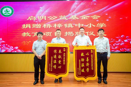 启明公益基金会理事长孙建军为桥梓小学、桥梓中学校长授牌
