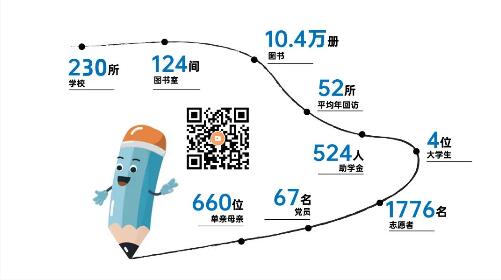 截至目前,“让爱传出去”项目已携手品牌经营人援建公益学校230所,遍及全国22个省、市、自治区,全国已挂牌“尚赫图书室”124间,累计捐赠图书10.4万册,总价值126万码洋。