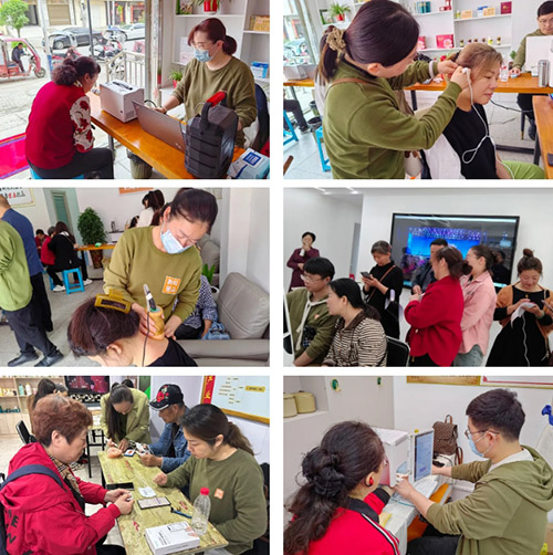 在社区覆盖的新时优品健康管理服务中心里,志愿者们用先进的四诊合参中医智能监测设备为社区居民开展健康监测服务,并针对个人情况提出相应的健康解决方案,受到大家的一致好评。